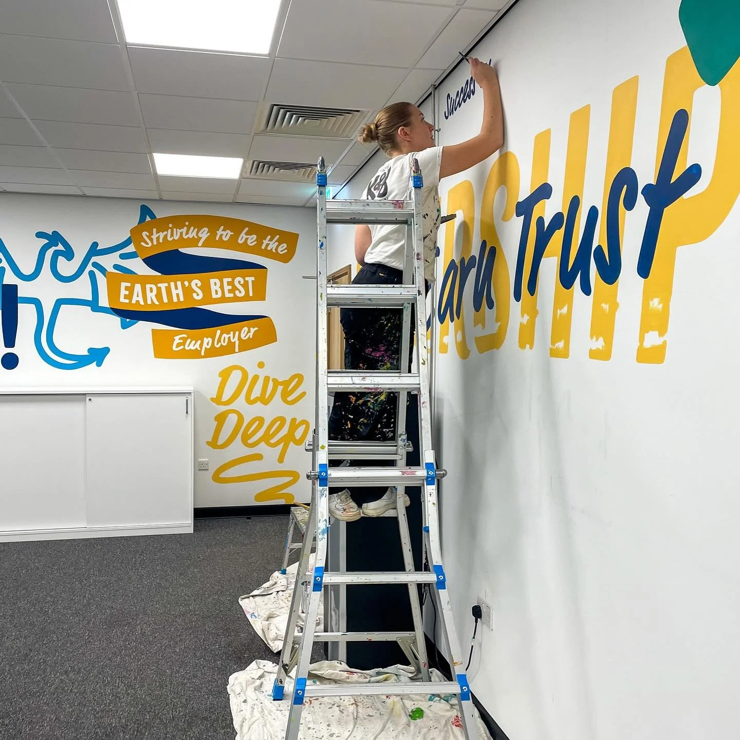 Weβre Kirsty and Brittany, the founders of K&B Design. We specialise in creating bespoke mural artwork thatβs developed in close collaboration with our clients, ensuring every design aligns with their brand, values, and environment. From corporate offices to commercial spaces, our murals are crafted to enhance interiors, communicate identity, and create memorable, visually impactful experiences.