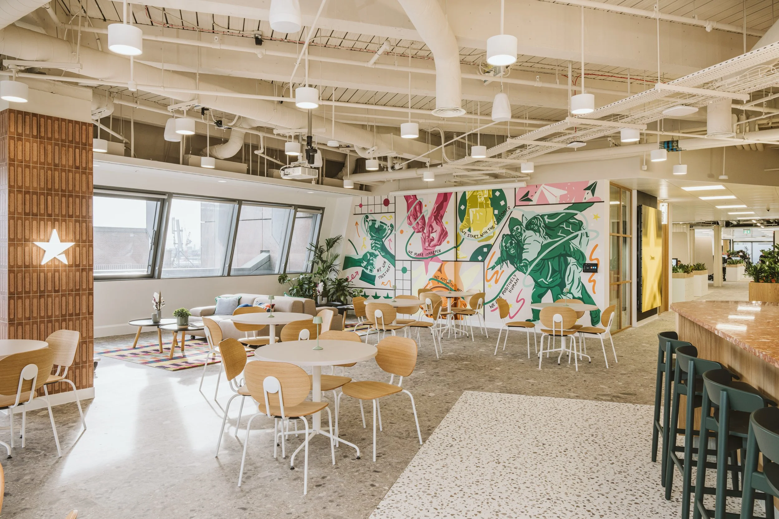 We were commissioned by Dthree Studios to work with themselves and client Trustpilot. Creating a branded mural as part of their London office refurbishment. Showcasing the brands five values and colours, we created a playful design that is still fun for the corporate office.