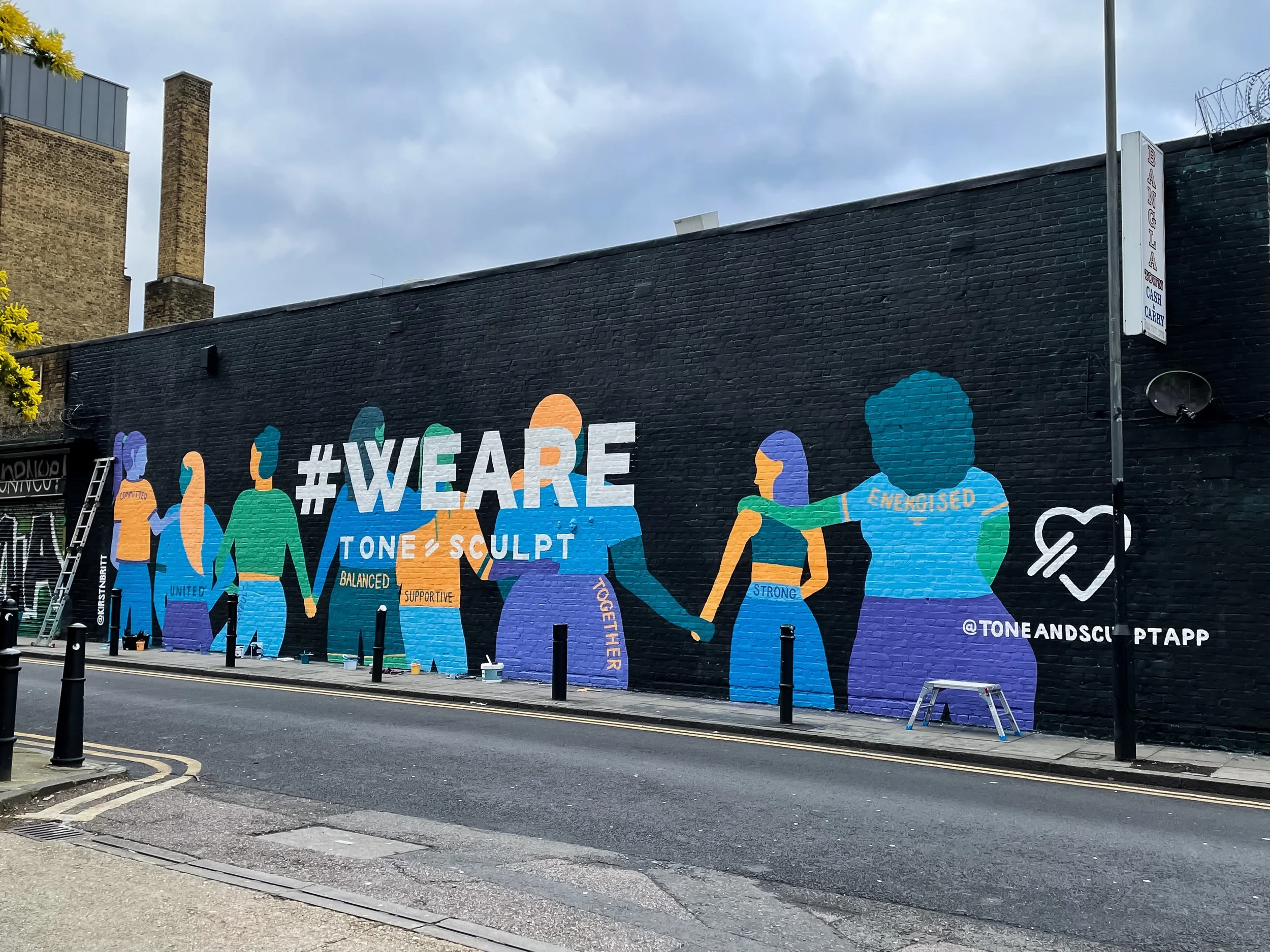 Nursery mural by local artists, brightens up courtyard with fun street art.